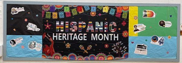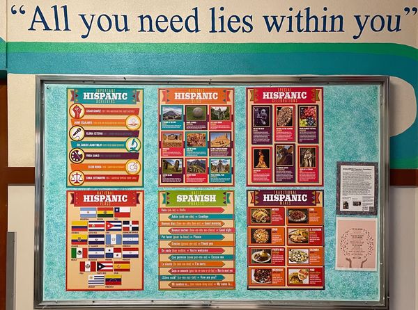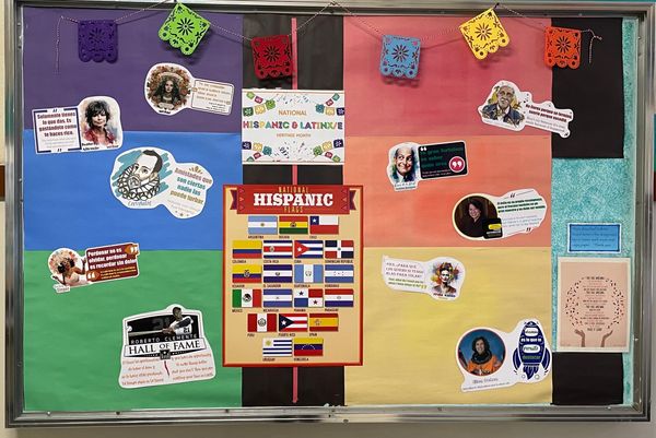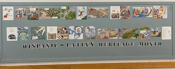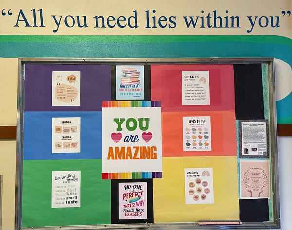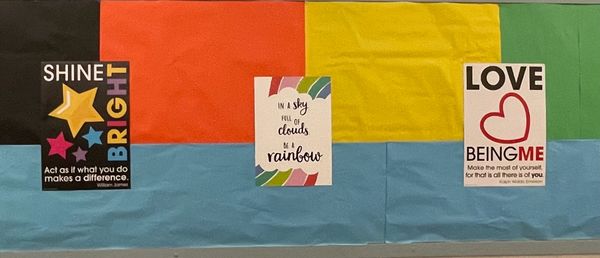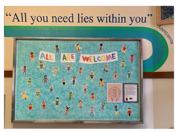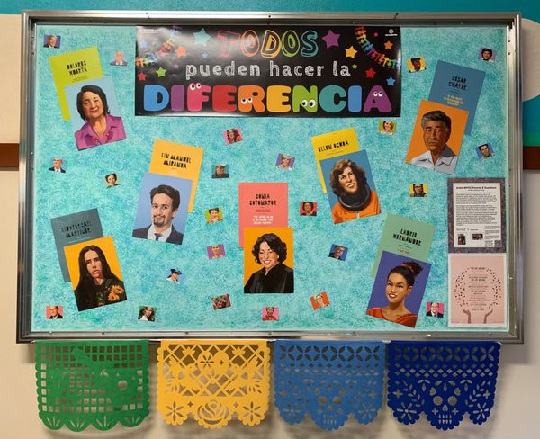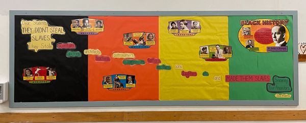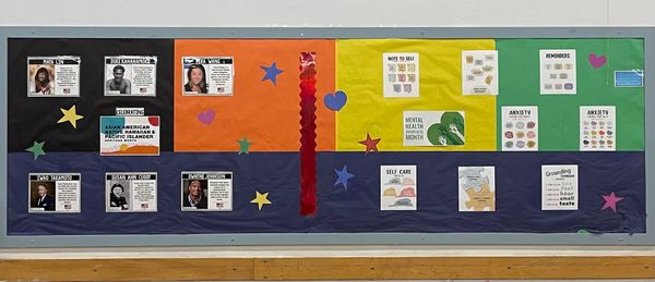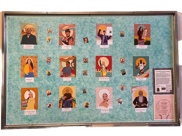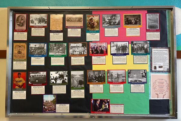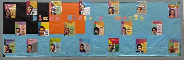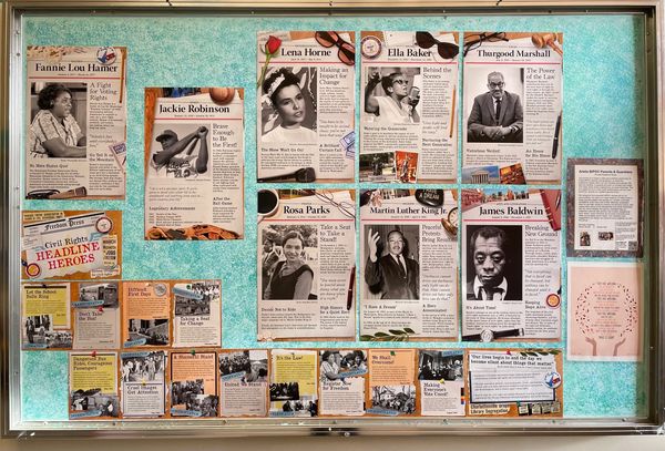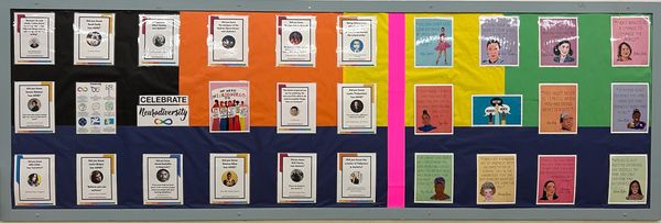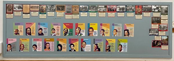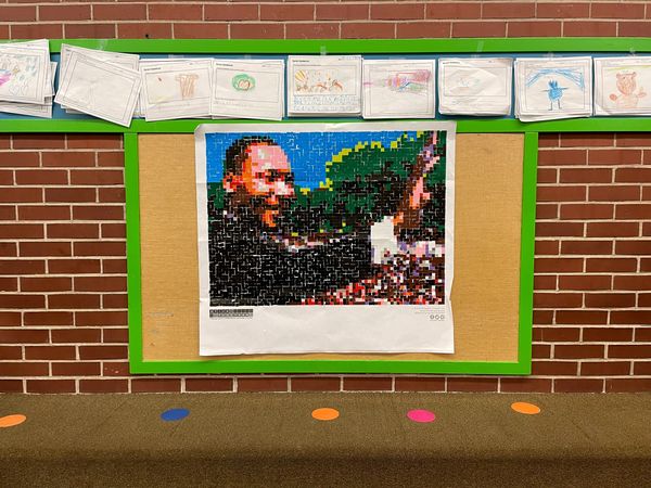 School-wide student MLK, Jr. sticker mosaic housed in the library