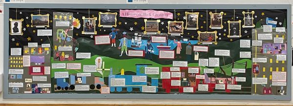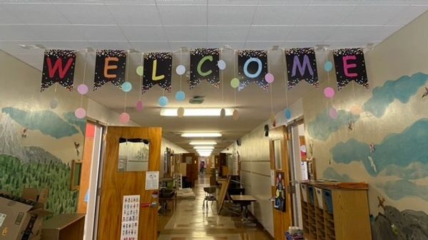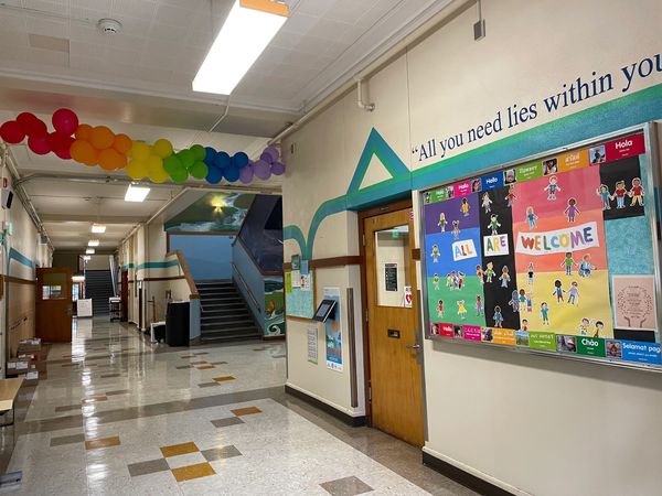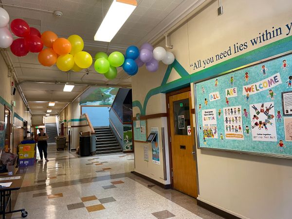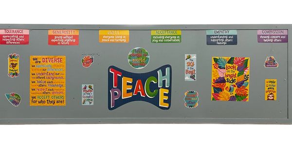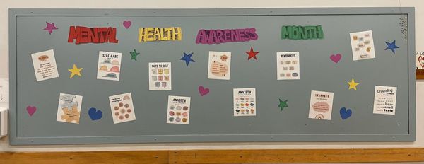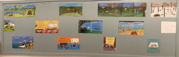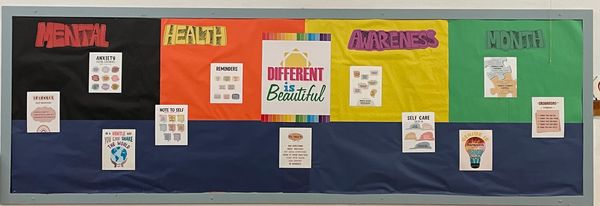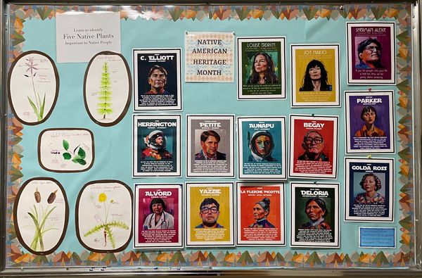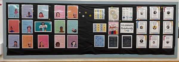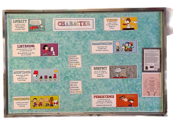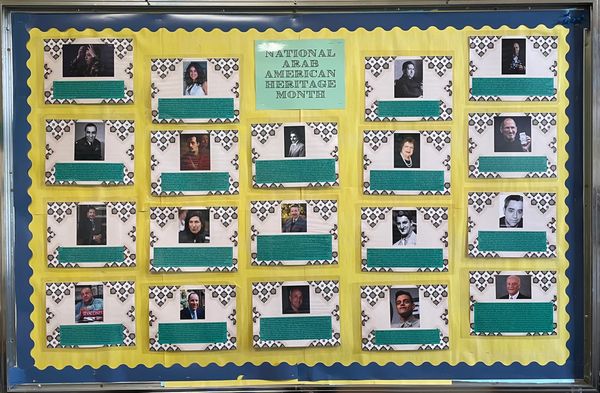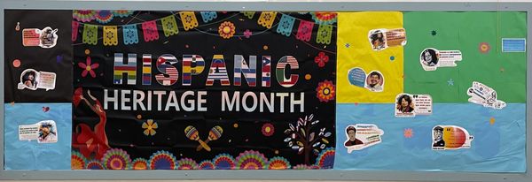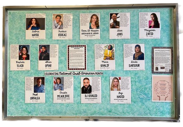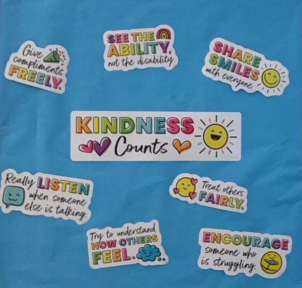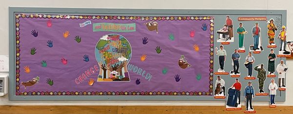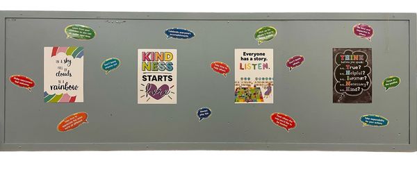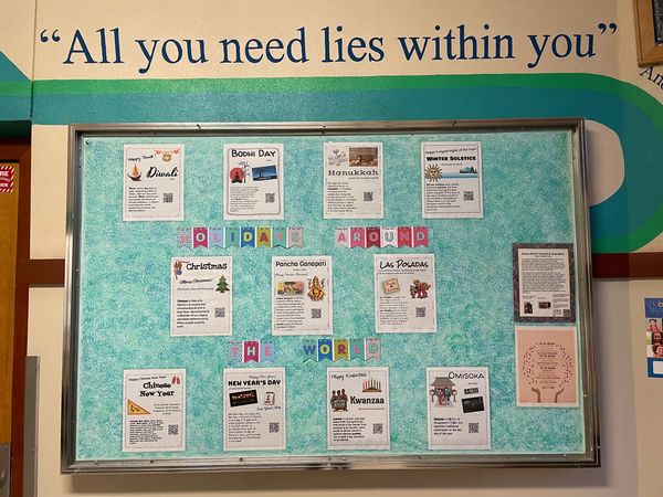 School-wide student MLK, Jr. sticker mosaic housed in the library