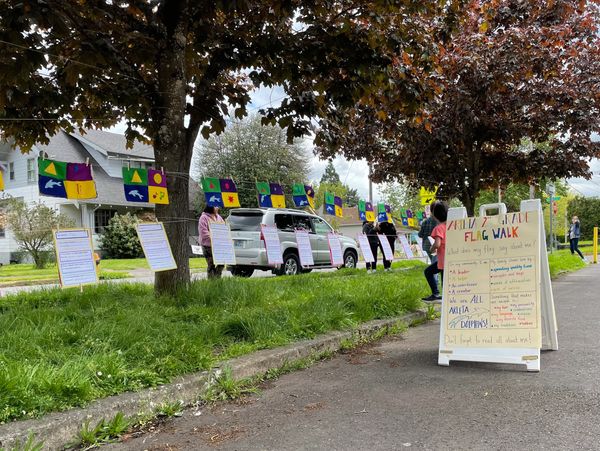 Brainstorm with 2nd Grade Team projects to highlight students' intersecting identities resulting in the first annual Flag Walk