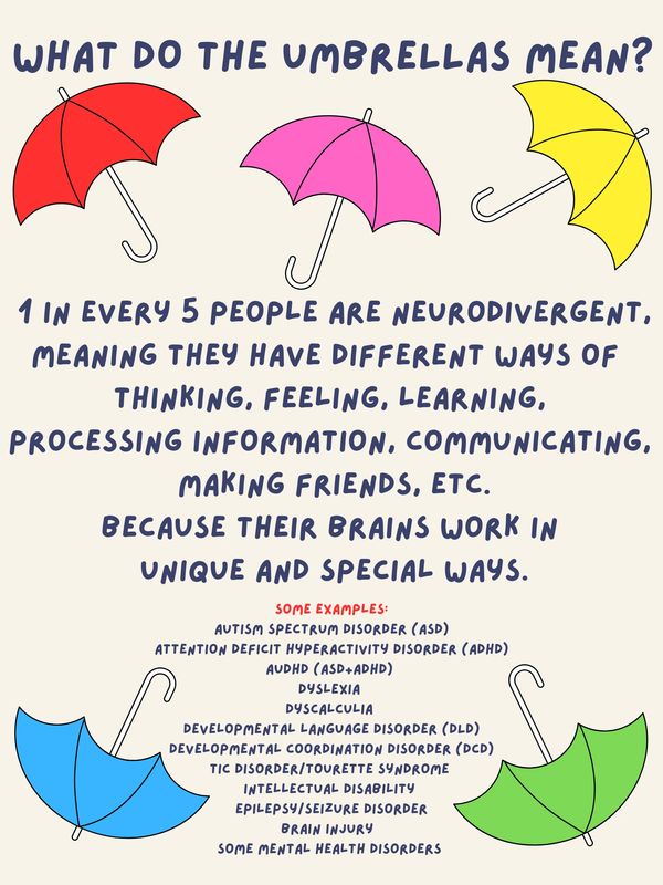 The Neurodiversity Umbrella Project and flags representing subtypes